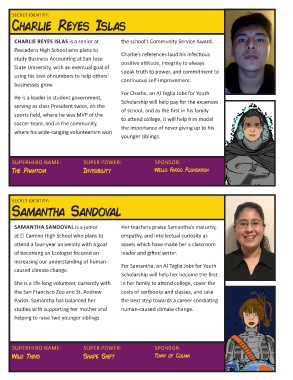 CHARLIE REYES ISLAS is a senior at the school’s Community Service Award.